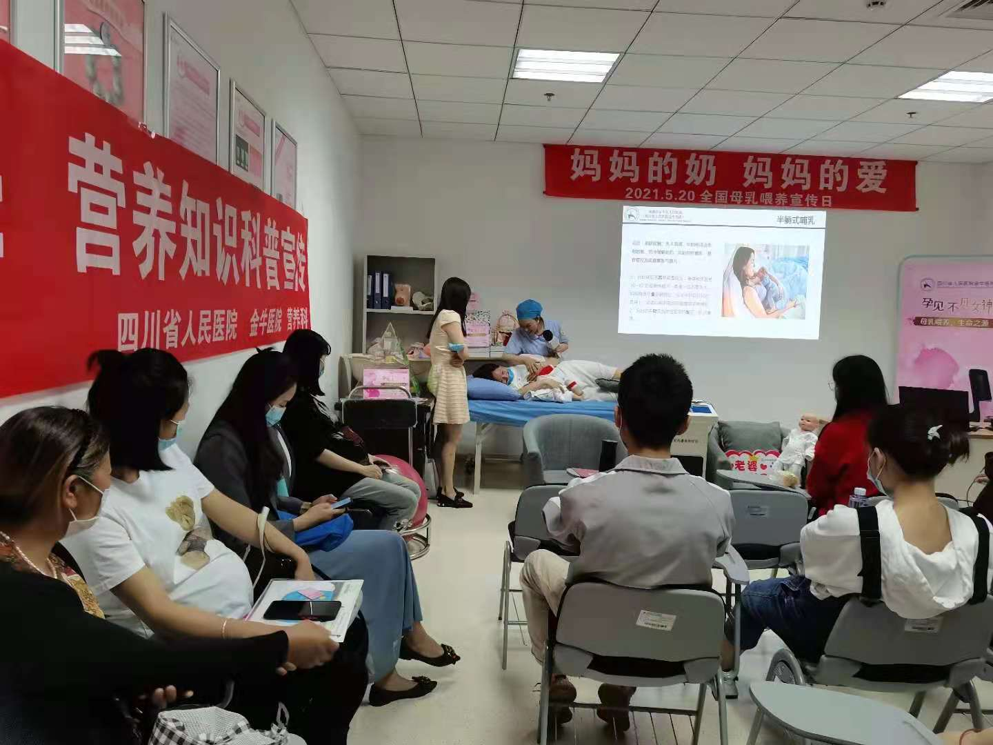 活动还邀请了营养科、康复科和麻醉科医师参与现场宣教,产科副主任护师阳佼伶为大家进行了母乳喂养专题讲座,现场示范指导正确哺乳姿势及挤奶、按摩手法,详细阐述了促进母乳成功喂养的方法、母乳喂养的技巧及常见问题处理等。